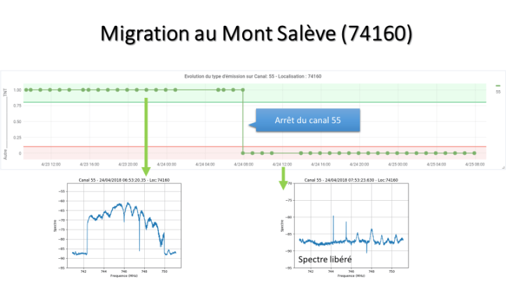 Ce dispositif expérimental mis en place a permis le suivi en temps réel du redéploiement des fréquences attribuées à la TNT. Il a vérifié le bon fonctionnement des équipements de télédiffusion avant, pendant et après la migration.